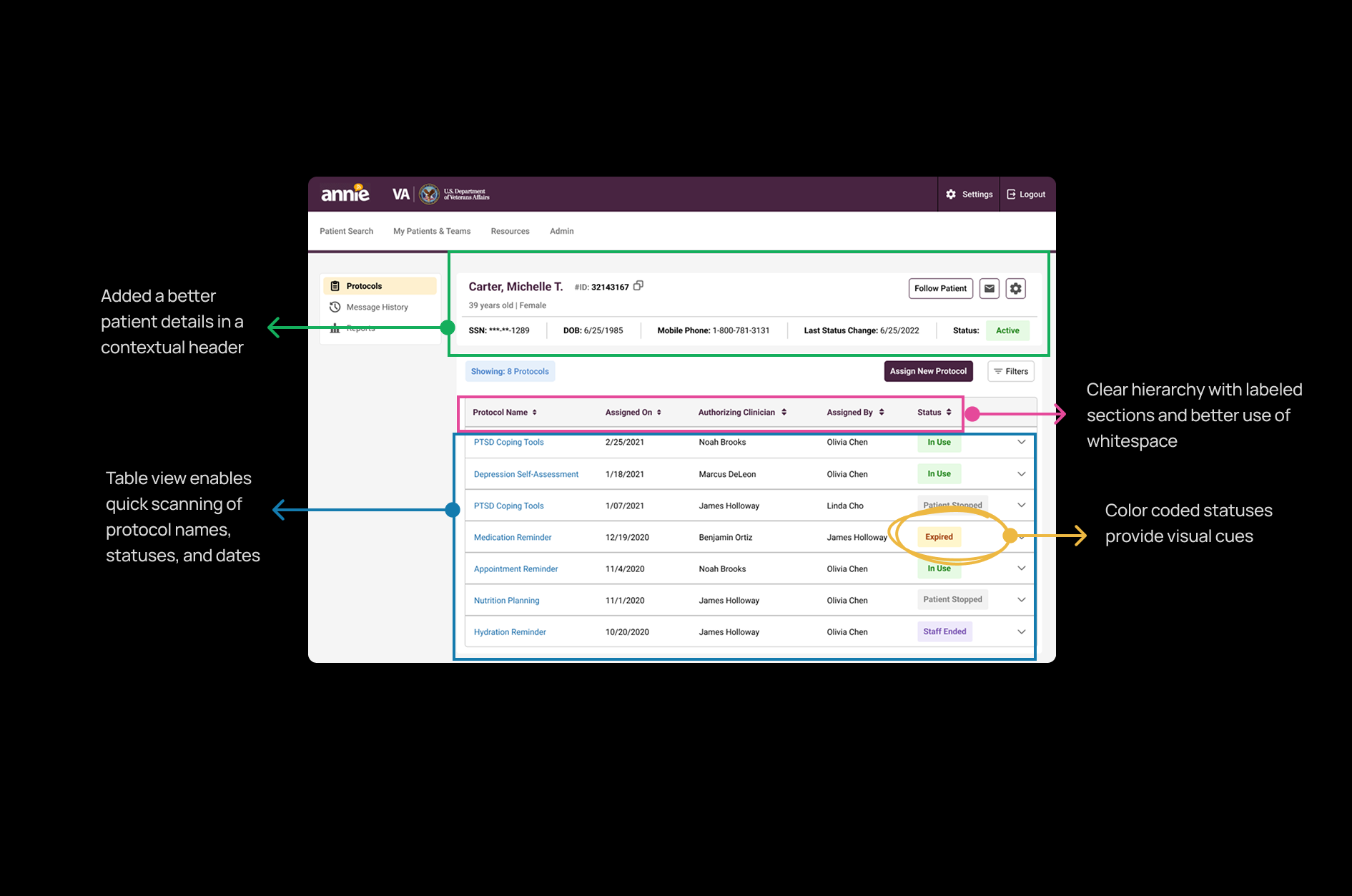 Designing for the VA means balancing usability with compliance, and simplicity with flexibility. Annie for Clinicians taught me how to: